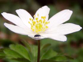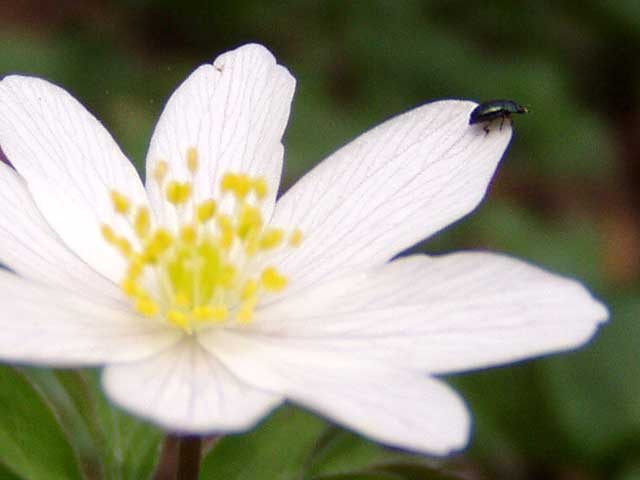 Blüte eines Buschwindröschens (Anemone nemorosa) mit einem kleinen Käfer |