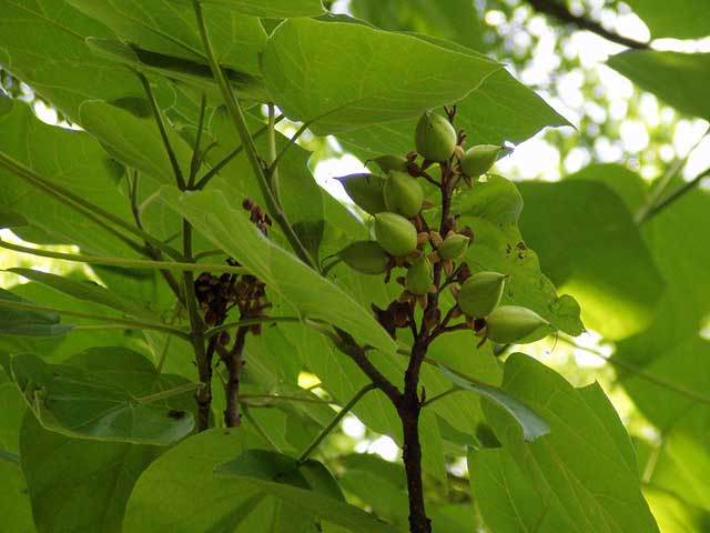 Der Chinesische Blauglockenbaum setzt bereits Fruchtkapseln an. |