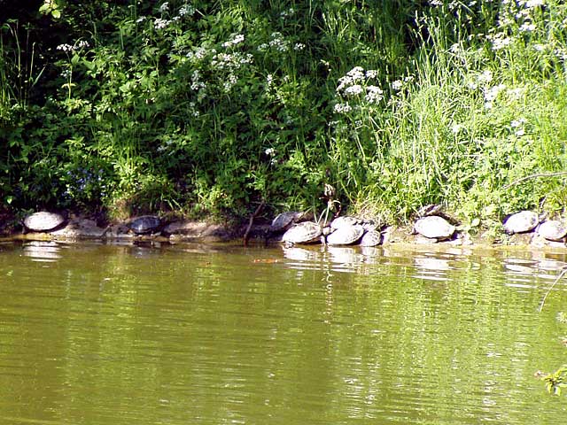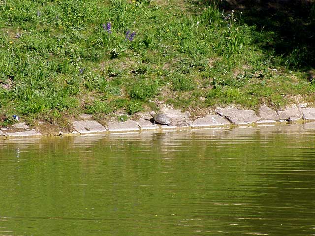 Wieder entdecke ich im Wasser eine Schildkröte. |