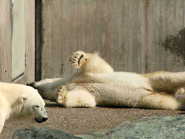 Ein Eisbär räkelt sich in der warmen Sonne. |