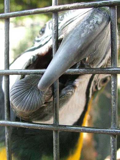 Die Zunge des Gelbbrustaras ist zu sehen. |