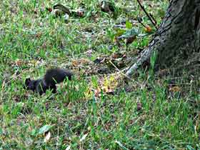 Ein schwarzes Eichhörnchen huscht vorbei. |