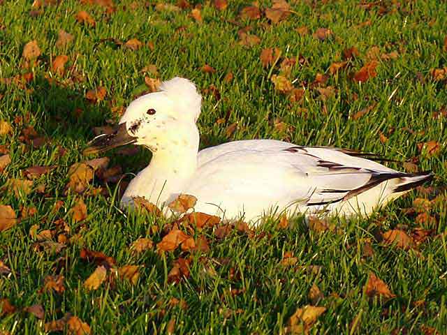 Nein, da ist eine Ente und ihre Spiegelung im ruhigen Wasser.