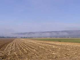 Letzte Nebelschwaden der Nacht ziehen hier und da über die Felder.
